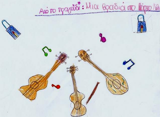 Στο μάθημα της Γλώσσας συναντήσαμε μια ενότητα που μιλούσε για παιδικά τραγούδια. Γνωρίσαμε και ακούσαμε κάποια παιδικά τραγούδια. Μας άρεσαν και για αυτό αποφασίσαμε να ζωγραφίσουμε εικόνες που μας ¨έρχονταν¨ όταν τα ακούγαμε. Ακόμη γράψαμε κάποια κείμενα για το ποιο τραγούδι άρεσε στον καθένα μας περισσότερο.